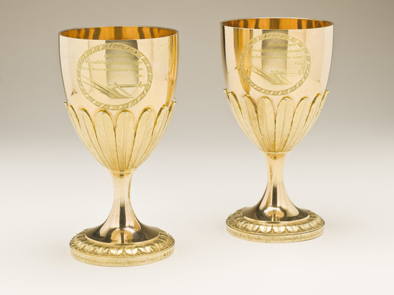 Pair of Goblets with Coat-of-Arms for Lewis Majendie of Hedingham Castle