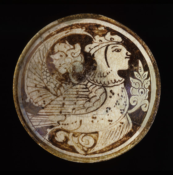 Fritware, overglaze luster-painted