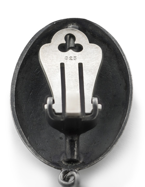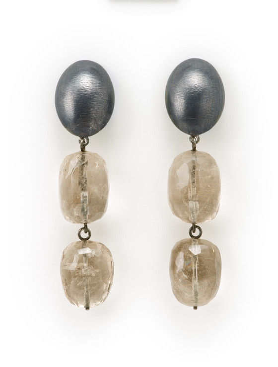 Each earring: 2 7/8 × 11/16 × 1/2 in. (7.3 × 1.75 × 1.27 cm)
