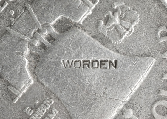 Mink, US currency, silver, brass, nickel, freshwater pearls, mother of pearl, glass, chrome-plated metal