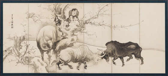 Pair of six-panel screens; ink on paper