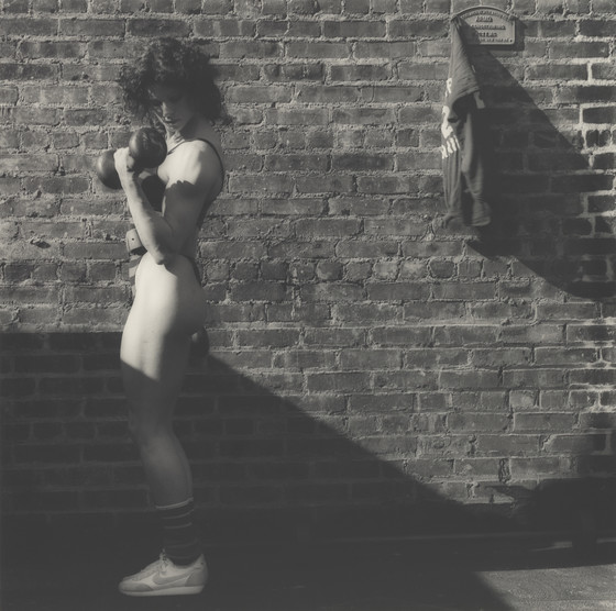 Inscription: Verso, mount: lower left, in pencil, "853 Lisa Lyon, 1982"; lower center, in pencil, "1/10"; lower right, in pencil, "v" [encircled]