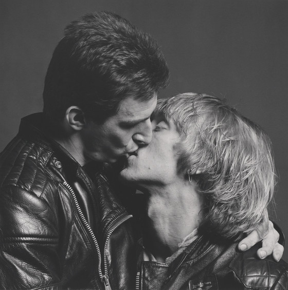 Inscription: Verso, mount: lower left, in pencil, "352 Larry and Bobby kissing, 1979"; lower center, in pencil, "8/10"; lower right, in pencil, "2009"