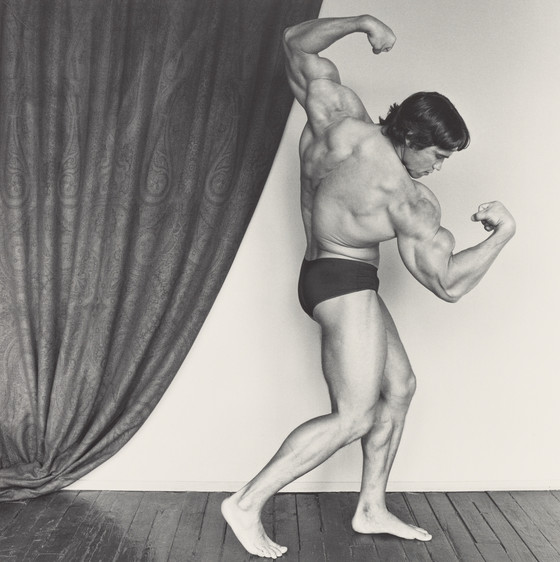 Inscription: Verso, mount: lower left, in pencil, "49.1 [space] Arnold Schwarzenegger, 1976"; lower center, in pencil, "3/10"; lower right, in pencil, "2006"