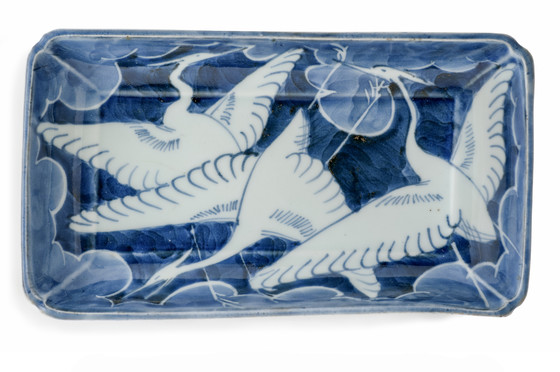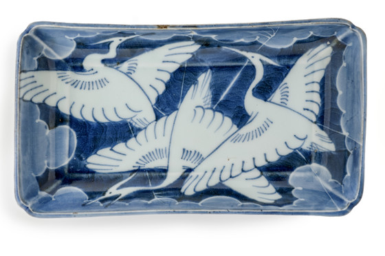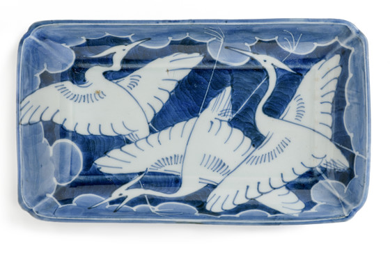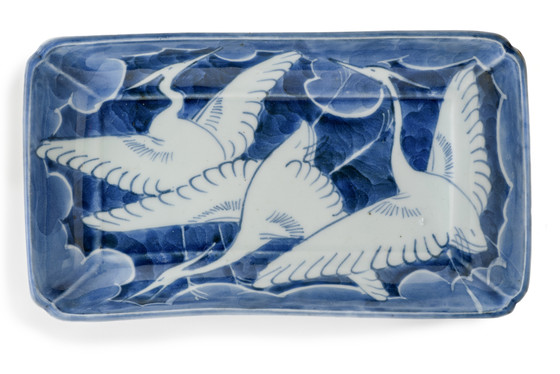 Alternate Title: 肥前有田焼染付雲に白鷺図長皿