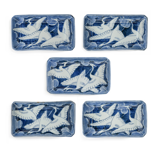 Set of Five Food Vessels with Design of Egrets and Clouds