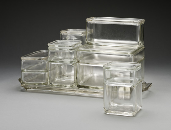 Through the centuries, improved manufacturing methods and architectural innovations meant that its use became more sophisticated. For example, the Romans used tiny bits of colored glass to make brightly colored mosaics that resemble murals. Later, it was used to make windows, including the brilliantly colored stained glass windows of Gothic cathedrals. The selection presented here, from the museum’s permanent collection, ranges from utilitarian bottles used in the Ancient Middle East, all the way to contemporary times, when glass is used to make purely aesthetic works of art sometimes known as “art glass.”