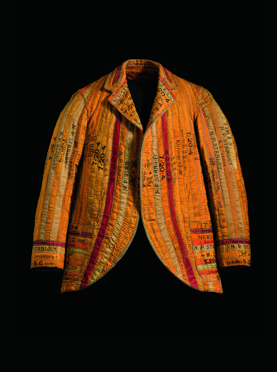 Silk plain-weave and silk twill ribbons (cigar bands), printed, and quilted on wool plain weave