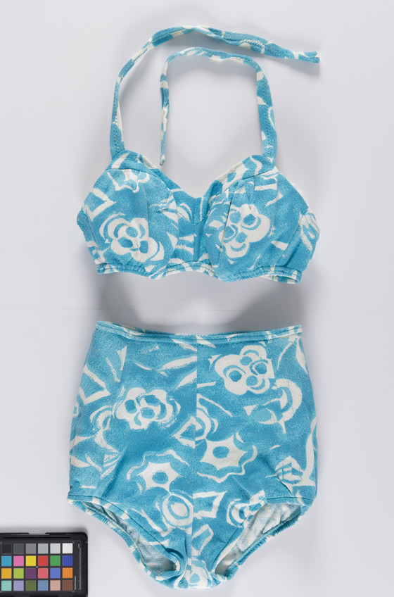 Bikini and Swimsuit: nylon/ Lastex knit, printed