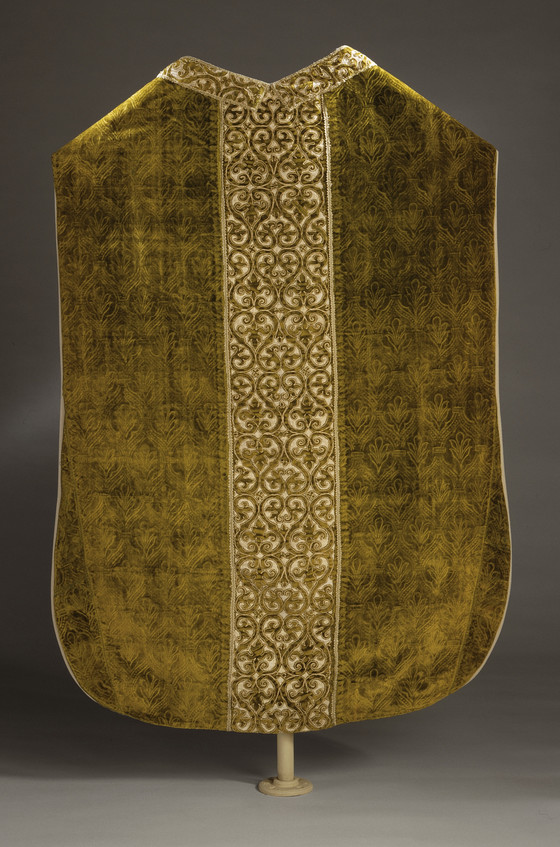 Silk velvet, embossed, silk plain weave with silk velvet appliqué, silk cord