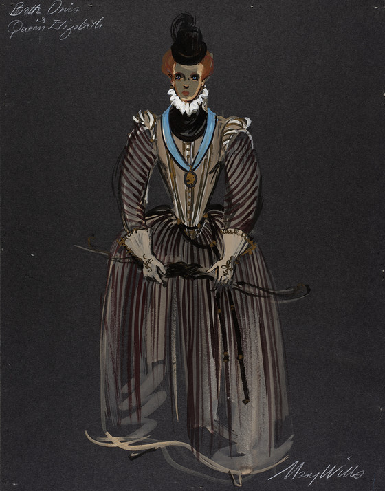 Costume Sketch of Bette Davis as Queen Elizabeth I in the 20th Century Fox Production, 'The Virgin Queen'