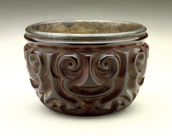 Carved black and red lacquer (tixi) on wood core with silver lining