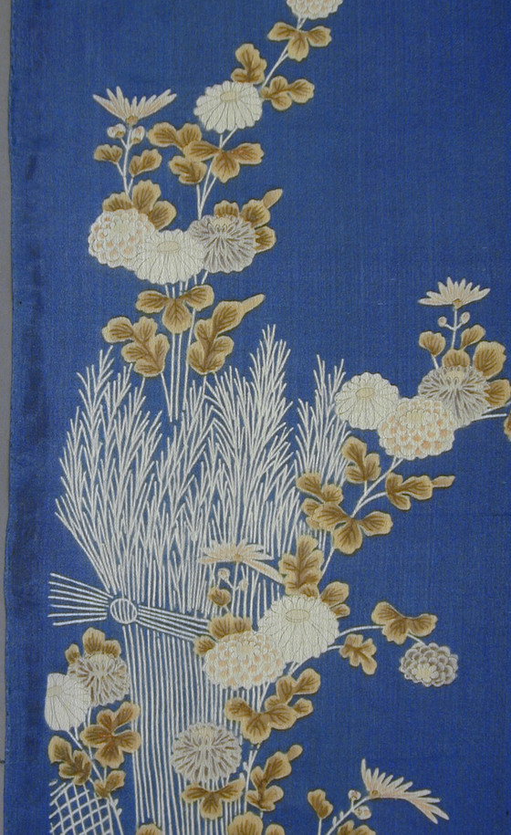 Kosode (Kimono) Fragment with Brushwood Fence and Chrysanthemums