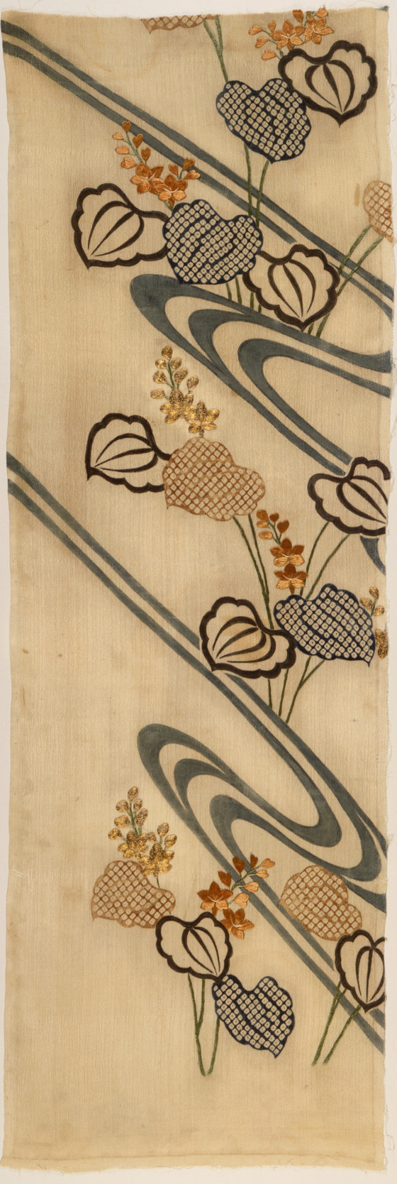 Kosode (Kimono) Fragment with Flowing Water and Pickerel Weed (Mizu Aoi)