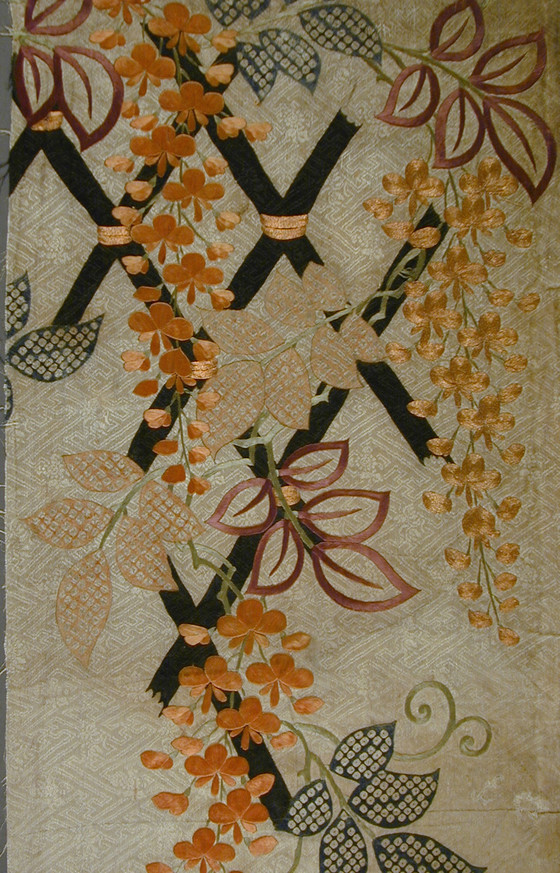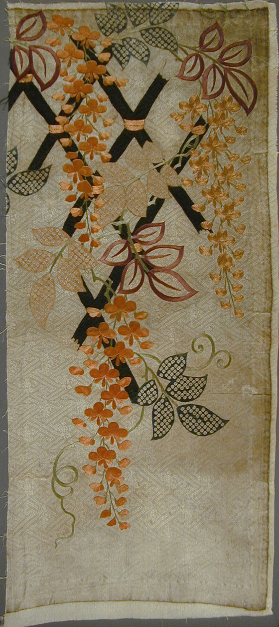 Kosode (Kimono) Fragment with Wisteria and Fence