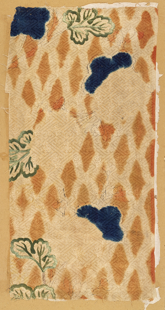 Kosode (Kimono) Fragment with Chrysanthemums and Net Pattern