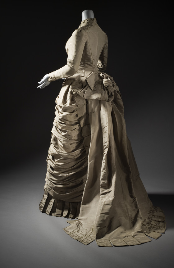 Bodice: silk plain weave (faille) with mother of pearl and cut steel buttons; Skirt: silk plain weave (faille)