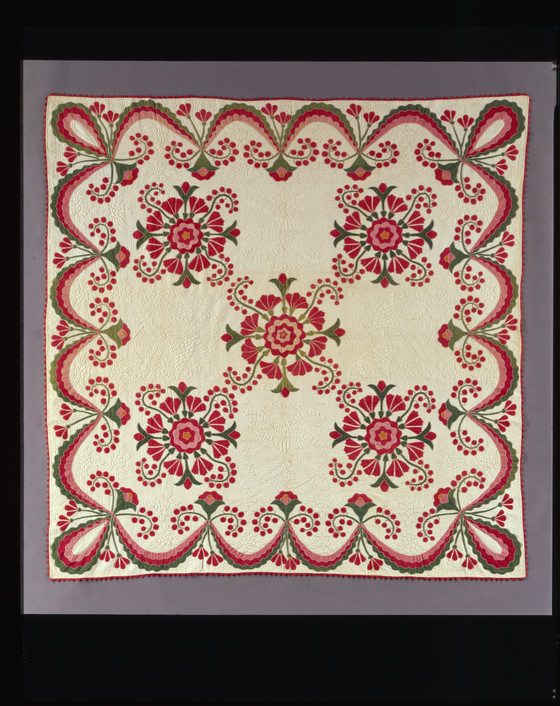 Quilt, 'Buchanan's Banner' with 'Rose of Sharon,' 'Lotus Flowers,' and 'Currants'