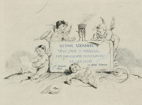 Octave Uzanne. Vous prie D'Agreer ses meilleurs compliments des saison. 1er Janvier 1892, 17 Quad Voltaire.