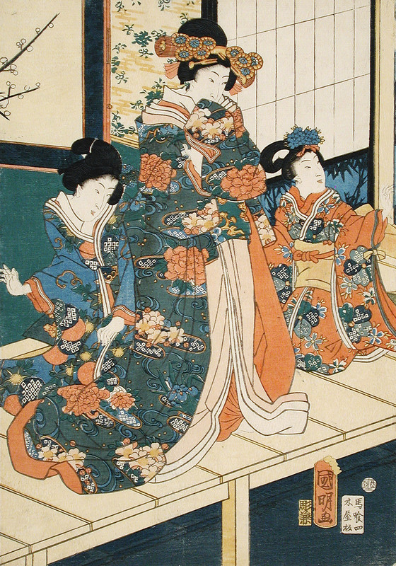 Color woodblock print, center panel from a triptych