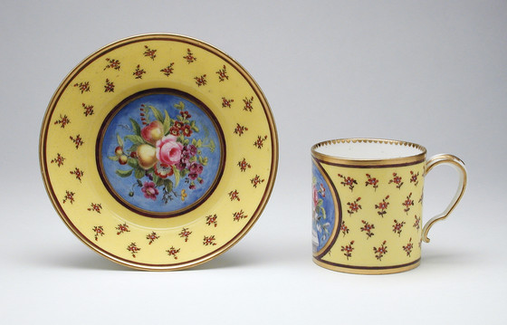 Cup height: 2 9/11 in. (7.16 cm); Saucer diameter: 5 5/16 in. (13.49 cm)