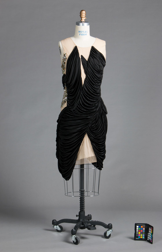 Silk net, silk plain weave (crepe), and silk knit (jersey) with crystals