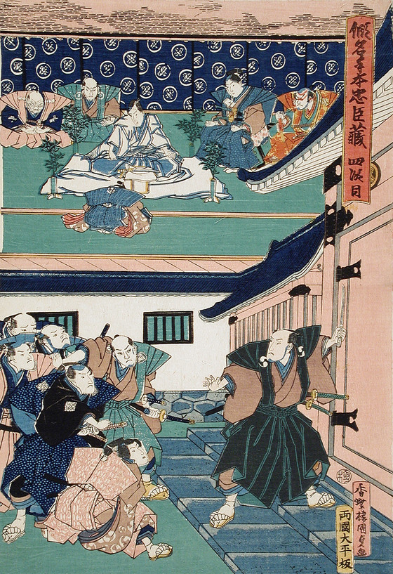 Act IV: Enya Asking for Yuranosuke before Committing Suicide; Yuranosuke Shows the Sword Used for Suicide to Enya's Retainers