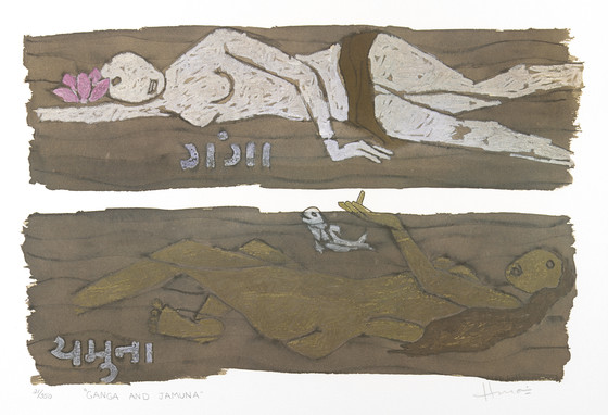 Ganga and Jamuna; Folio from the Mahabharata ([War of the] Great Bharatas) Series