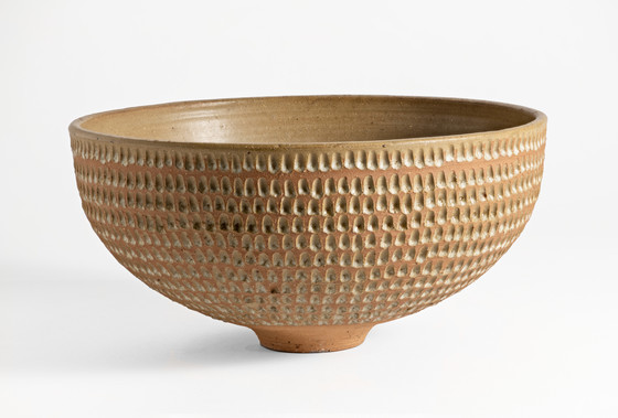 Doyle Lane was a studio ceramist and artist whose work ranged from vessels to large-scale tile murals. Born in Louisiana, Lane settled in Los Angeles by the early 1950s, where he worked as a glaze technician for the L.H. Butcher Company. He studied at Los Angeles City College and East Los Angeles College before attending the University of Southern California, where he probably took courses with the noted American ceramist F. Carlton Ball. Working in his El Sereno studio, Lane prolifically produced vessels and experimented with glazes. He is known for his wide variety of glaze effects, including vivid apple green, volcanic yellow-green, and a reddish-orange "orange peel." He often manipulated the surface of the clay to create mesmerizing patterns and gestural effects. Lane also made clay paintings, applying glaze to clay slabs fired under high temperatures that resulted in vivid color combinations and textured surfaces. As an African American craftsman working in Los Angeles in the mid-20th century, Lane found that artistic opportunities were limited—he could not show in the mainstream galleries and did not have access to influential collectors. However, he prevailed over these obstacles, focusing on commissions for architects such as A. Quincy Jones, and selling work through the Brockman Gallery and Ankrum Gallery, which showcased Black artists. This piece came from the son of a Los Angeles schoolteacher who bought classroom supplies from Lane, and occasionally bought his work. Bobbye Tigerman, Marilyn B. and Calvin B. Gross Curator, Decorative Arts and Design, 2018