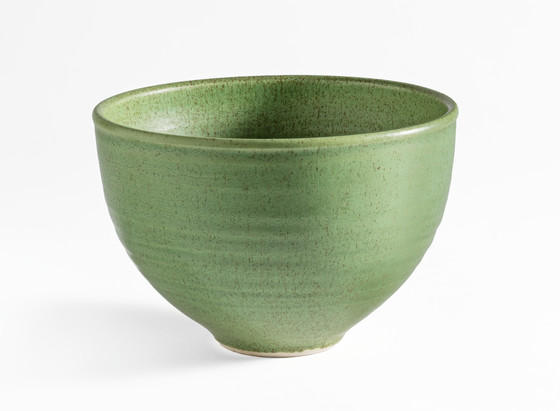 Doyle Lane was a studio ceramist and artist whose work ranged from vessels to large-scale tile murals. Born in Louisiana, Lane settled in Los Angeles by the early 1950s, where he worked as a glaze technician for the L.H. Butcher Company. He studied at Los Angeles City College and East Los Angeles College before attending the University of Southern California, where he probably took courses with the noted American ceramist F. Carlton Ball. Working in his El Sereno studio, Lane prolifically produced vessels and experimented with glazes. He is known for his wide variety of glaze effects, including vivid apple green, volcanic yellow-green, and a reddish-orange "orange peel." He often manipulated the surface of the clay to create mesmerizing patterns and gestural effects. Lane also made clay paintings, applying glaze to clay slabs fired under high temperatures that resulted in vivid color combinations and textured surfaces. As an African American craftsman working in Los Angeles in the mid-20th century, Lane found that artistic opportunities were limited—he could not show in the mainstream galleries and did not have access to influential collectors. However, he prevailed over these obstacles, focusing on commissions for architects such as A. Quincy Jones, and selling work through the Brockman Gallery and Ankrum Gallery, which showcased Black artists. This piece came from the son of a Los Angeles schoolteacher who bought classroom supplies from Lane, and occasionally bought his work. Bobbye Tigerman, Marilyn B. and Calvin B. Gross Curator, Decorative Arts and Design, 2018