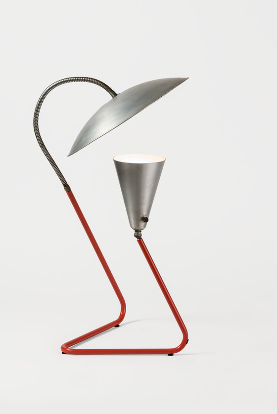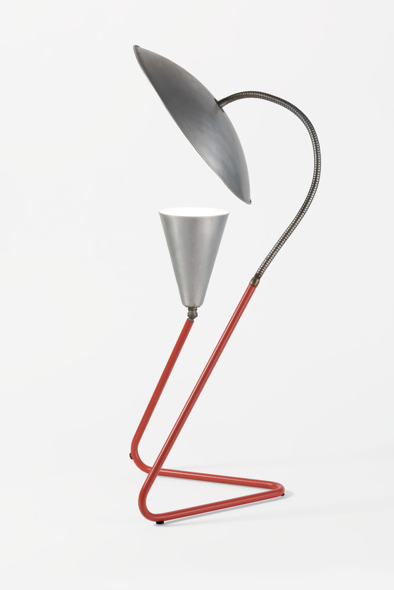 Spurred by architect Marcel Breuer’s comment that he could not find a single well-designed floor or table lamp for his Exhibition House at the Museum of Modern Art in 1949, MoMA sponsored a lighting design competition the following year, with works by fifteen of the winners included in a "New Lamps" exhibition from March to June, 1951. In collaboration with MoMA, the manufacturer Yasha Heifetz co-sponsored this national competition, and then put ten of the prize-winning lamps into production. Zahara Schatz’s entry was one of the lamps that were then sold at progressive design stores throughout the country.