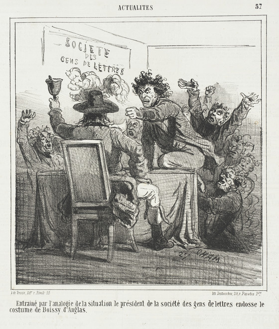 Entrainé par l'analogie de la situation le président de la société des gens de lettres endosse le costume de Boissy d'Anglas.