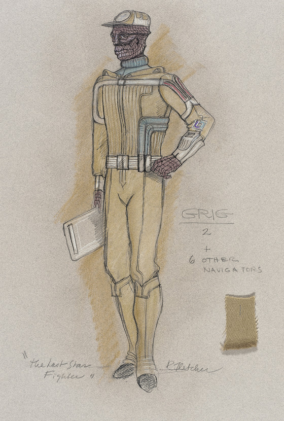 Costume Sketch of Dan O'Herlihy as Grig and Six Other Navigators in the Universal Pictures Production of 'The Last Starfighter'