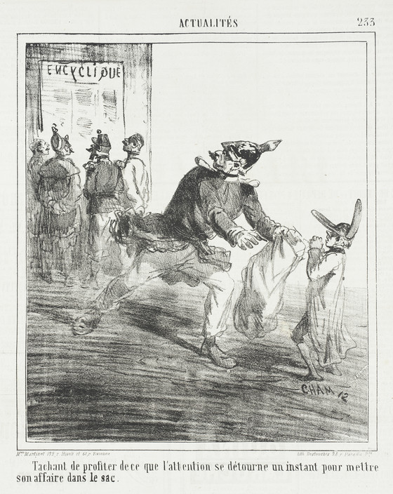 Tachant de profiter de ce que l'attention se detourne un instant pour mettre son affaire dans le sac