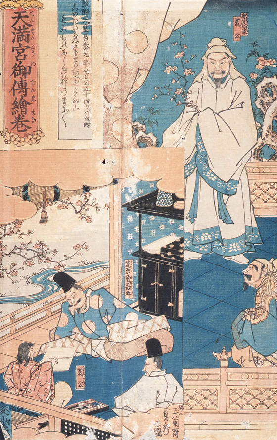 Tenjin (Michizane) Crossing to China; Michizane taught by his father, Koreyoshi