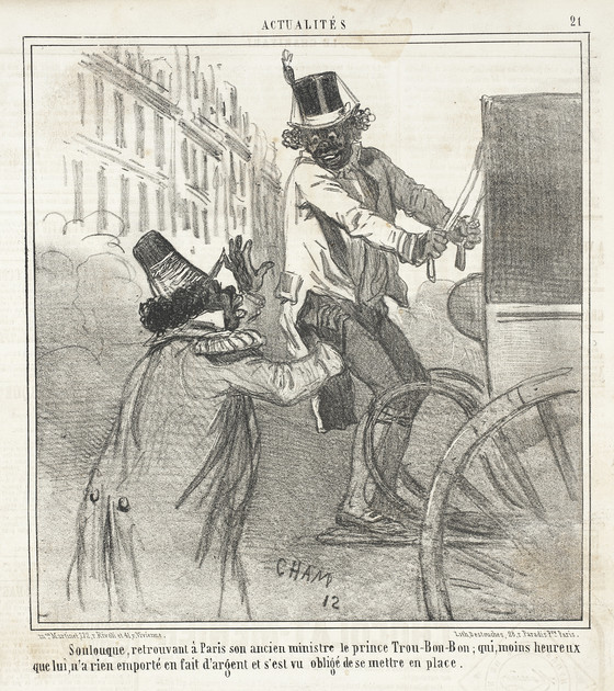 Soulouque, retrouvant à Paris son ancien ministre le prince Trou-bon-bon; qui, moine heureux que lui, n'a rien emporté en fait d'argent et s'est vu obligé de se mettre en place.
