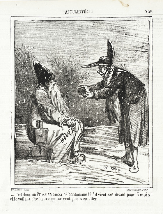 C'est donc un Prussien aussi ce bonhomme là? Il (Hiver) vient soi disant pour 3 mois! Et le voila à c'te heure qui ne veut plus s'en aller.