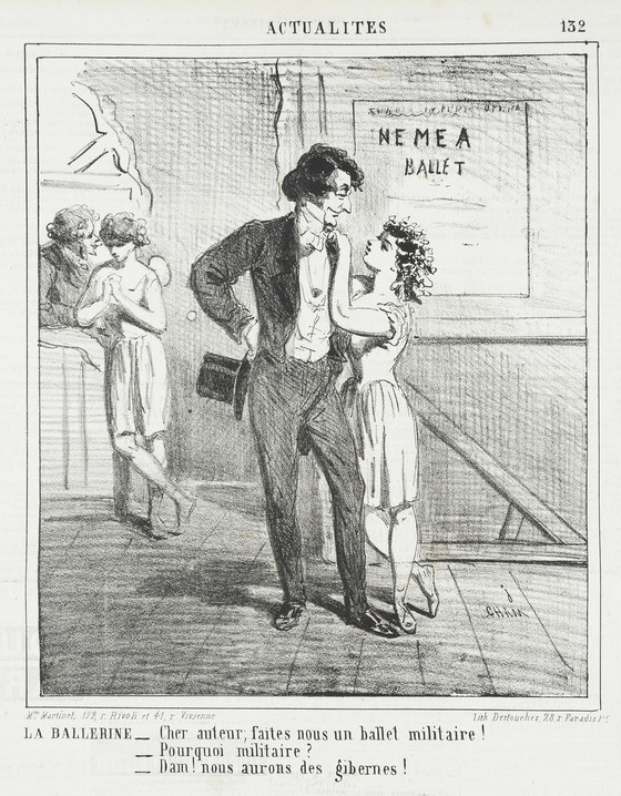 La ballerine: Cher auteur, faites nous un ballet militaire! -Pourquoi militaire? -Dam! Nous aurons des gibernes!