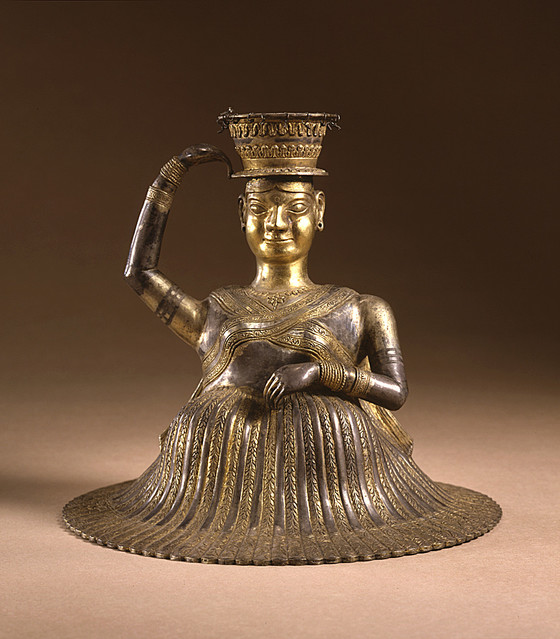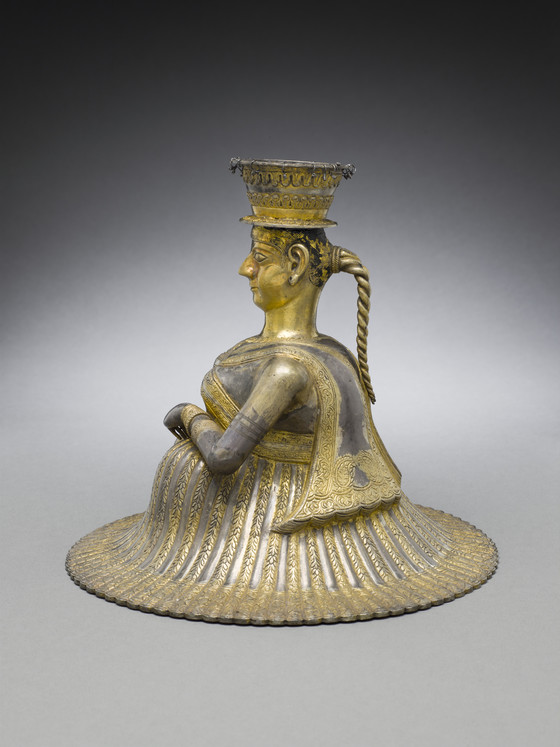 Parcel-gilt silver, chased; traces of paint