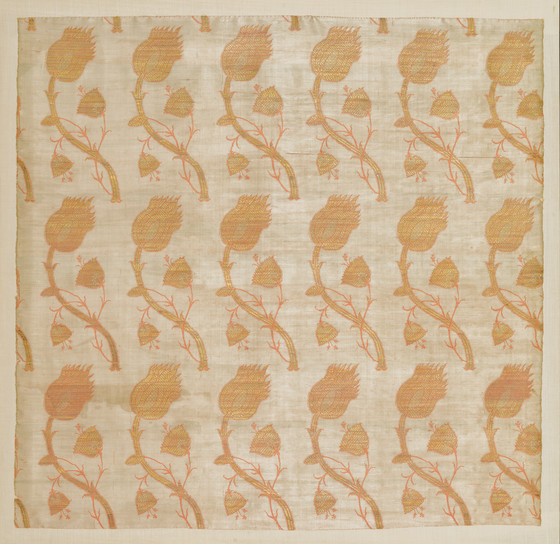 Silk double weave with silk- and metallic-thread supplementary-weft patterning