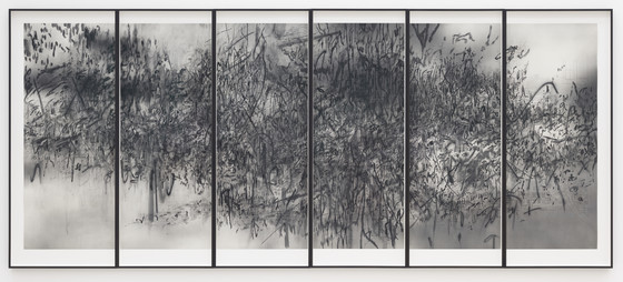 Photogravure, sugar lift aquatint, spit bite aquatint, and open bite on six panels