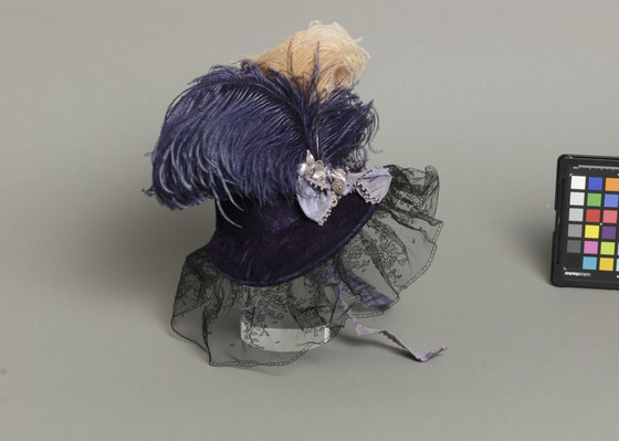 Silk velvet with silk net, ostrich feathers, and silk plain weave (taffeta)