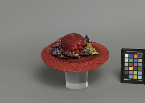 Straw, braided, with silk plain weave (taffeta) and plastic