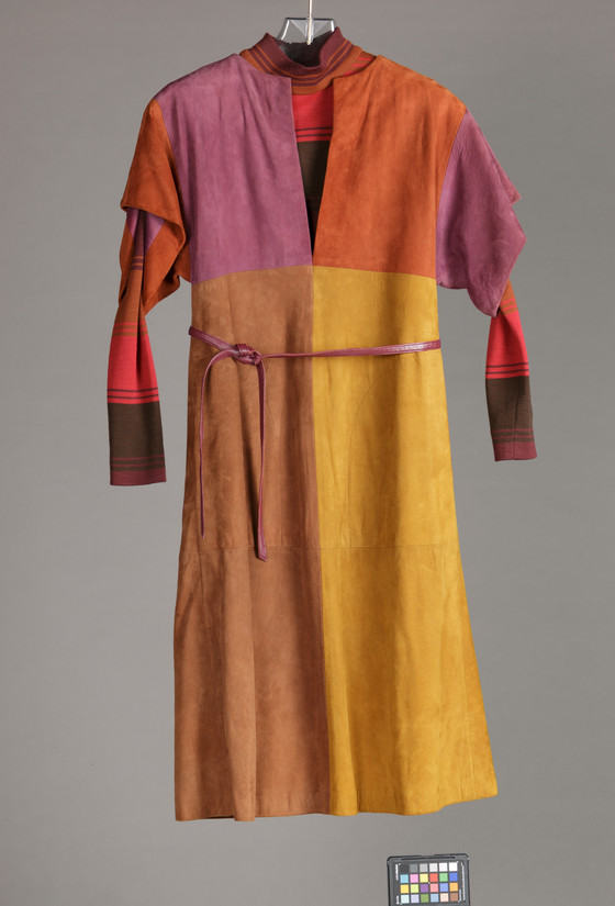 Overdress: suede; Dress: wool knit; Belt: leather