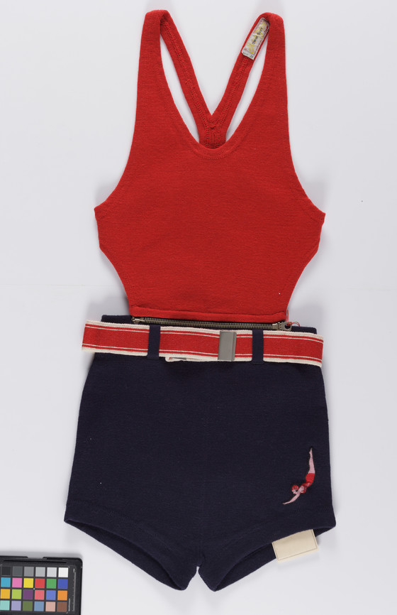 Top: wool knit and metal; Trunks: wool knit metal; Belt: wool knit and metal