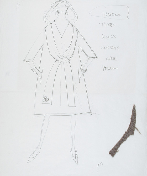 a) Pencil on paper with jersey fabric swatch attached b) Pencil on paper with wool tweed attached