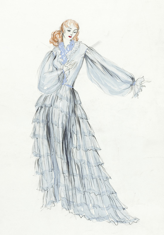 Costume Sketch of Ginger Rogers as Dolly Madison in the Universal Pictures Production of 'The Magnificent Doll'