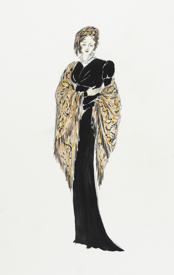 Costume Sketch of Ginger Rogers as Dolly Madison in the Universal Pictures Production of 'The Magnificent Doll'