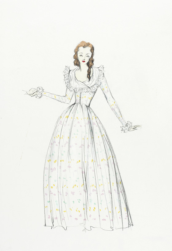 Costume Sketch of Ginger Rogers as Dolly Madison in the Universal Pictures Production of 'The Magnificent Doll'