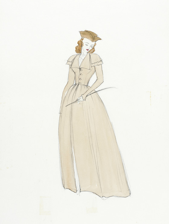 Costume Sketch of Ginger Rogers as Dolly Madison in the Universal Pictures Production of 'The Magnificent Doll'